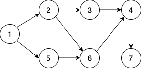| 진입차수 | 0 | 0 | 1 | 2 | 0 | 2 | 1 |